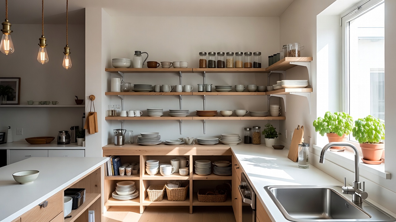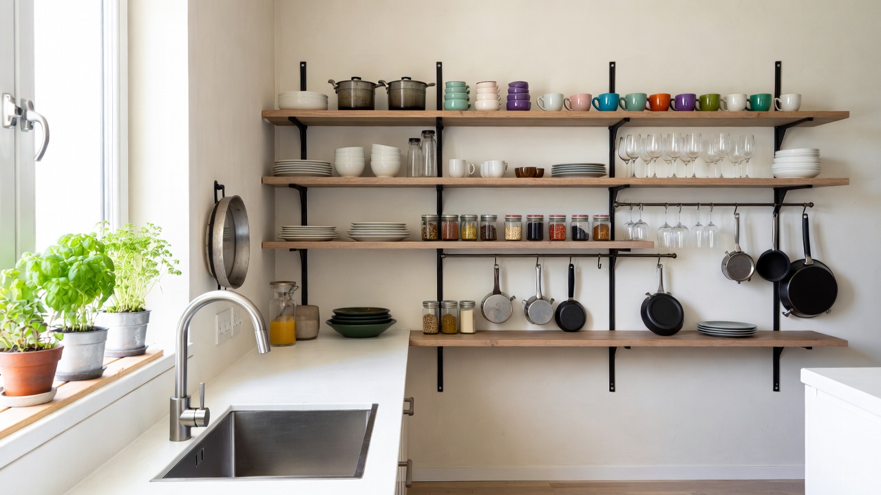 Od stanova sa Pinteresta do kompaktnih porodičnih kuća, otvorene police ulaze u mainstream kao svetlija i praktičnija alternativa tradicionalnim kuhinjskim elementima.